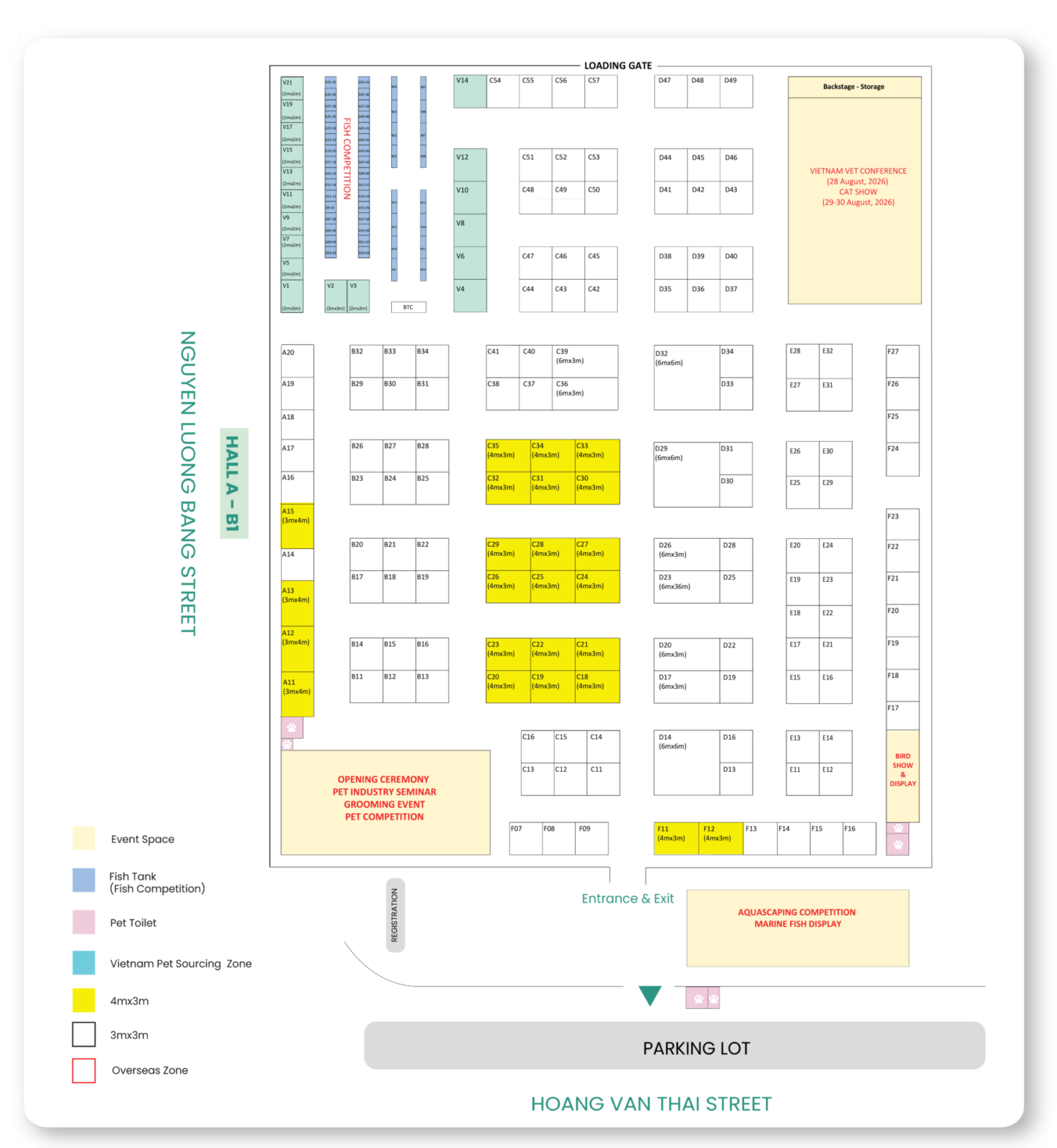 Kích thước gian hàng tối thiểu: