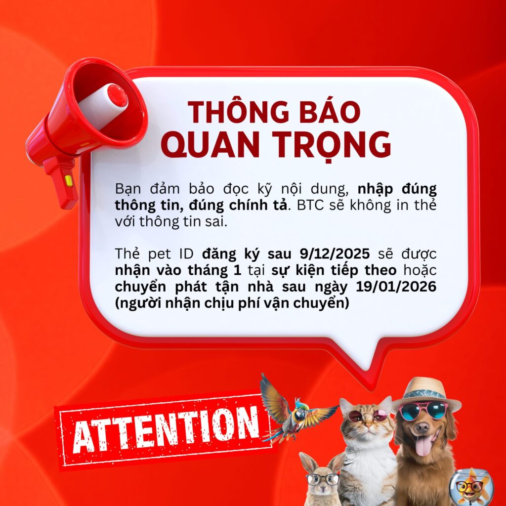 Đăng ký ngay để nhận thẻ Định Danh Thú Cưng miễn phí — món quà đầy tình cảm từ chúng tôi dành cho bạn và những người bạn bốn chân của bạn!